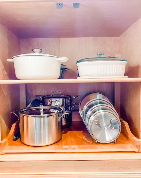 We love using a lid organizer to keep pots and pans lids from ending up all over the place. Using one makes it really easy to grab the pot and the lid that you need!
